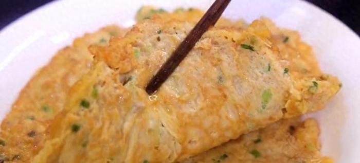 這樣子煎出來的肉末雞蛋餅,它又是另外一種口感,保留了煎的香氣,又特別嫩。有時候早餐,就光吃這個肉末雞蛋餅也能飽。