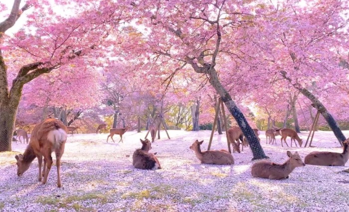 • 奈良 - 奈良公園、吉野山: 在櫻花樹下被鹿追著跑... 這體驗夠特別吧?奈良公園櫻花鹿群共生的畫面很經典。更硬核的是吉野山,號稱「一目千本」,整座山頭被櫻花覆蓋,分下千本、中千本、上千本、奧千本,花期由下往上漸開。