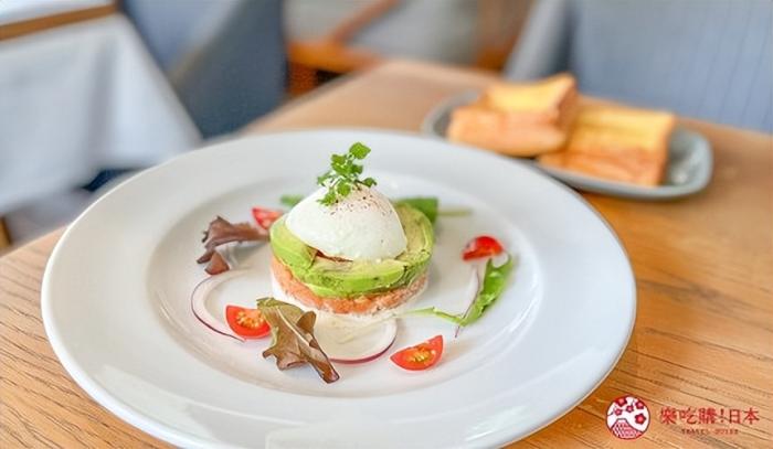 鮭魚塔塔酪梨佐水波蛋,搭配最出名的招牌法式吐司