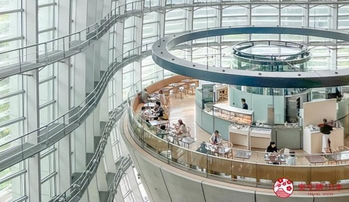醒目而顯眼的波浪型玻璃外觀,國立新美術館是日本建築師黒川紀章最後的代表力作,佔地廣達5萬平方公尺,是目前日本最大的美術館。沒有常設展的關係,無論是純粹來欣賞建築,或看不同時期的特展都很有意思。這裡的餐廳依照等級分別為一樓大廳的「貝殼咖啡館(Café Coquille)」,提供輕食及飲料;圓錐塔二樓的「圓形茶沙龍(Salon de Thé Rond)」,則能優雅的品嚐下午茶;至於另一個圓錐塔三樓則有三星廚神Paul Bocuse進駐的餐廳,午餐不到3,000日圓就能品嚐正宗法式料理,非常值得得一試。