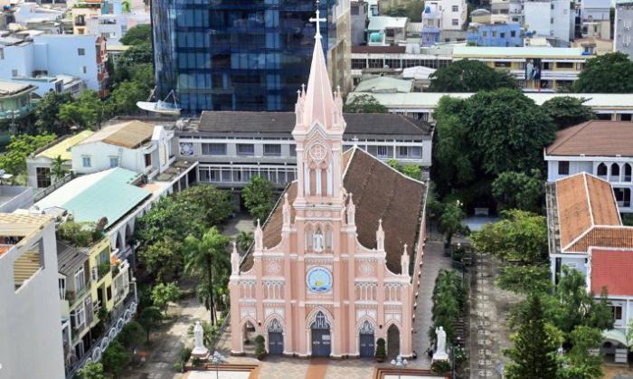 峴港主教座堂是越南最獨特的天主教教堂之一,其特色是粉紅色的教堂正面,彩色玻璃窗以及氣勢磅礴的鐘樓,上面裝有公雞風標。它是由法國人於1923年建造的,也稱為Con Ga教堂(公雞教堂),至今仍為當地的天主教社群服務。大教堂位於陳富街(Tran Phu Street)上,距離標誌性的龍橋(Dragon Bridge)約15分鐘步行路程。峴港主教座堂是免費的,其高塔可欣賞城市,漢江和翠綠的山脈的壯麗景色。